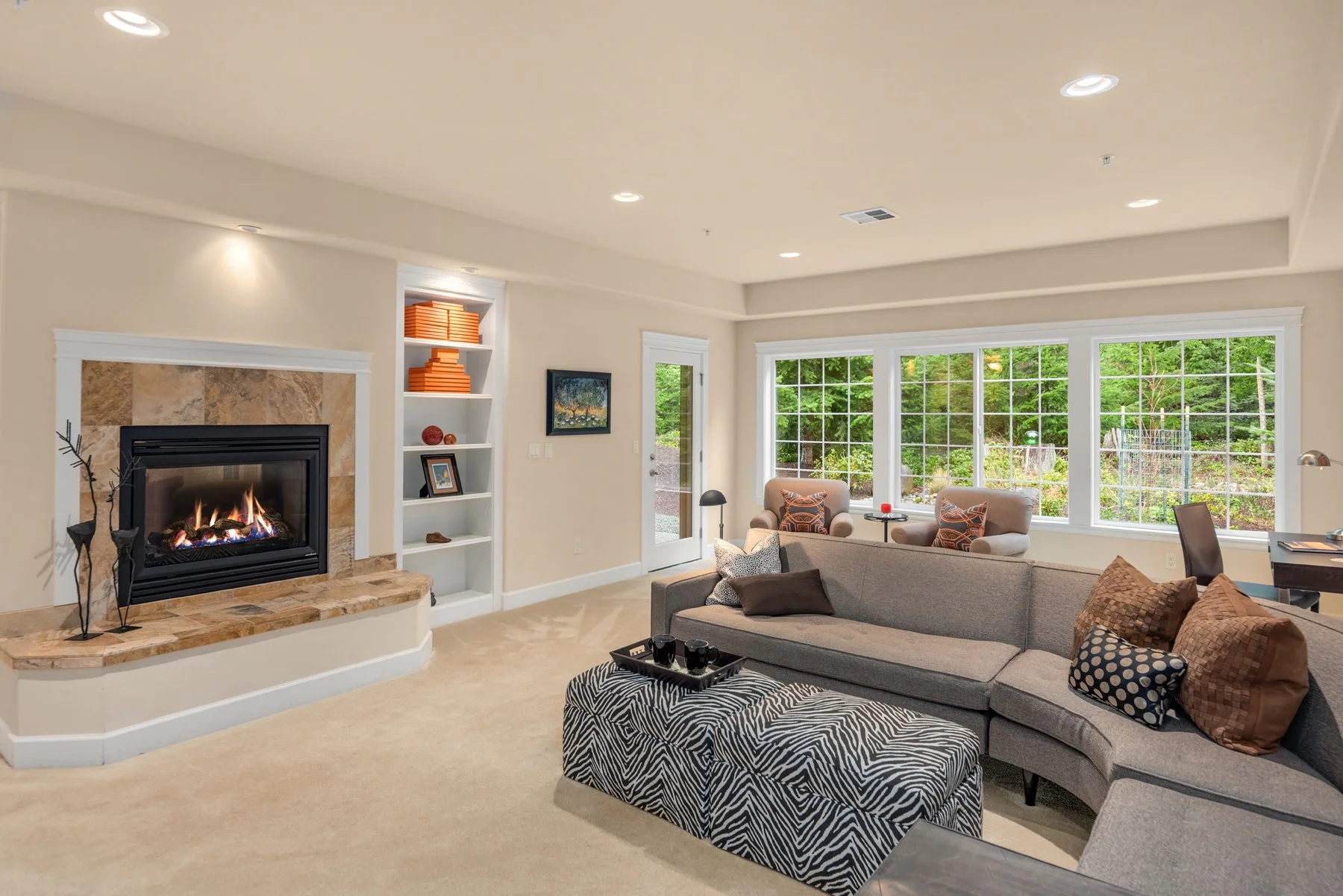 Privacy and location! Surrounded by nature with a protected forest as your back yard. The waterfront park and beach is just a 5-minute walk. This end unit condo offers open-concept living with a dual-sided gas fireplace and custom built-ins. Filled with natural light, it boasts a spacious primary suite with walk-in closet, 5-piece bath, and private patio—perfect for birdwatching. A gated entry courtyard creates a charming welcome, ideal for morning coffee or entertaining. The kitchen offers a skylight window, eating bar plus a formal dining area. Move-in ready, this home offers a true lock-and-leave lifestyle. Enjoy Washington Park trails, beaches, and Skyline Marina just outside your door. Features a very spacious 2-car garage, lightly used condo, with a $10,000 carpet allowance.